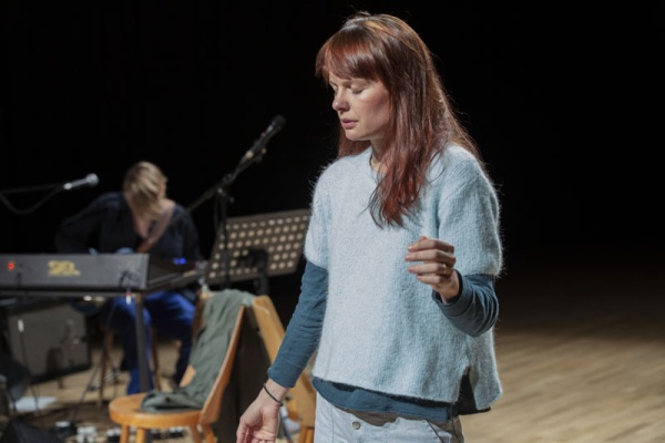 Il se bouche les oreilles et elle monte en scène.
